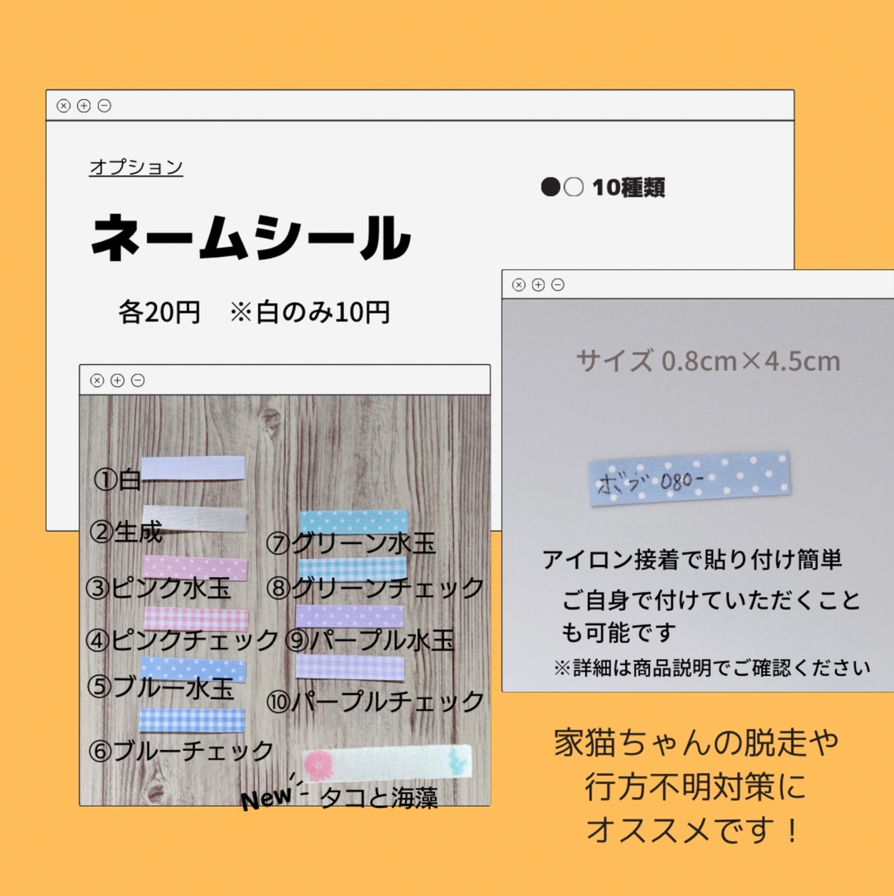○ネームシールお付けします(アイロン接着) サイズ 縦8mm × 幅40mm 1枚20円 ※白のみ10円