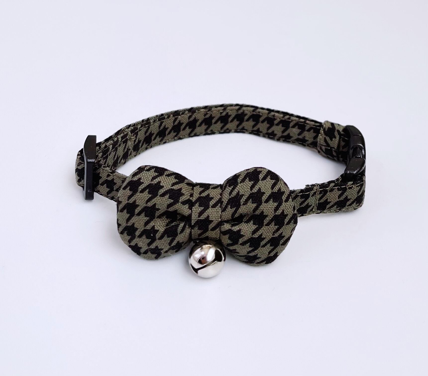 千鳥格子の丸リボン首輪