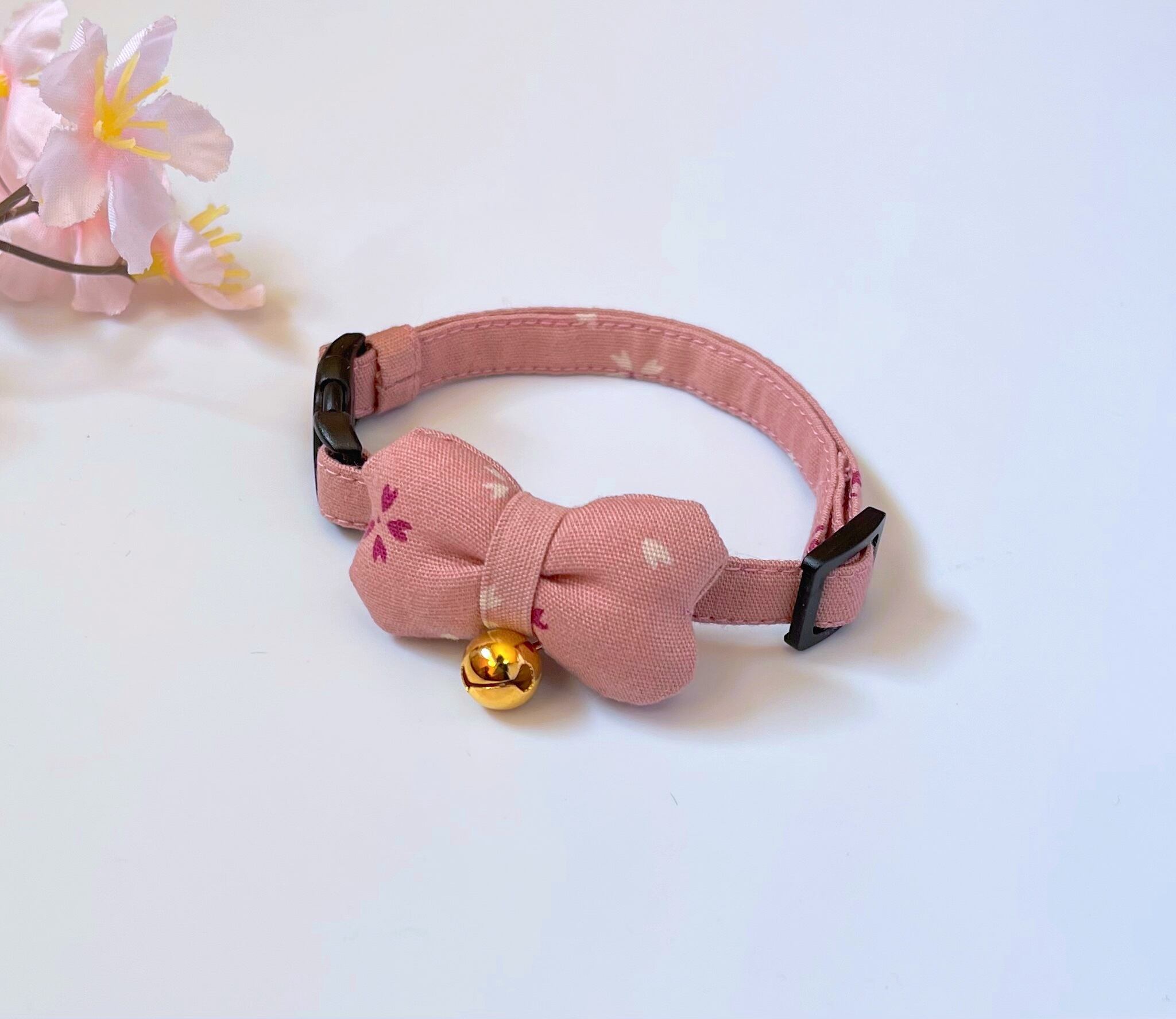 桜の花びら型のぷっくり可愛いリボン首輪です❀